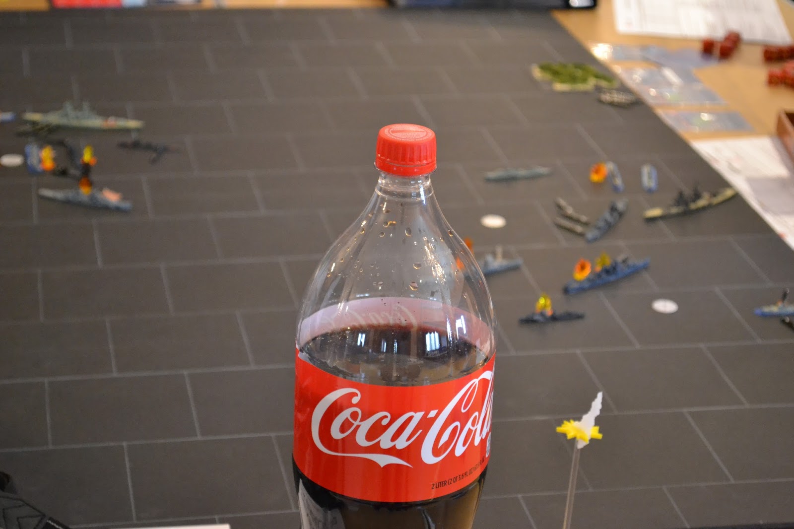 There is lots of sea room. The scenario is from the original rulebook. You gain victory points by being closest to the island in the center of the board at the end of the turn. Sinking of opponents ships it highly encouraged.